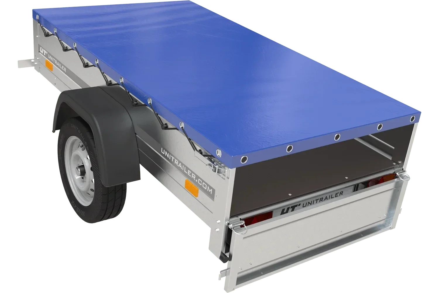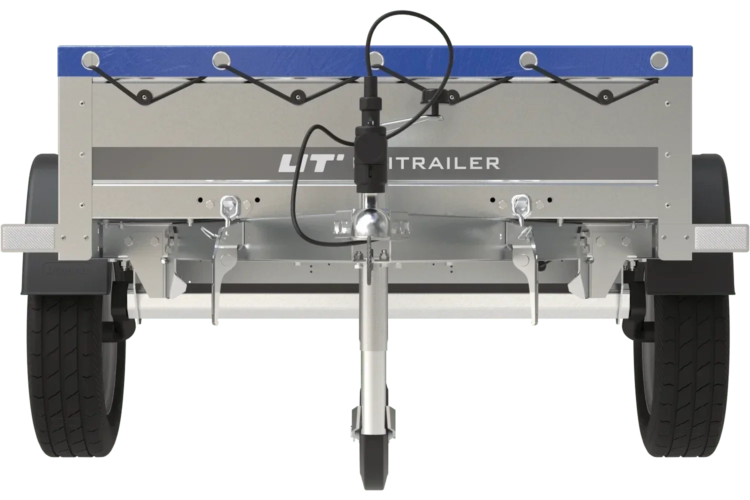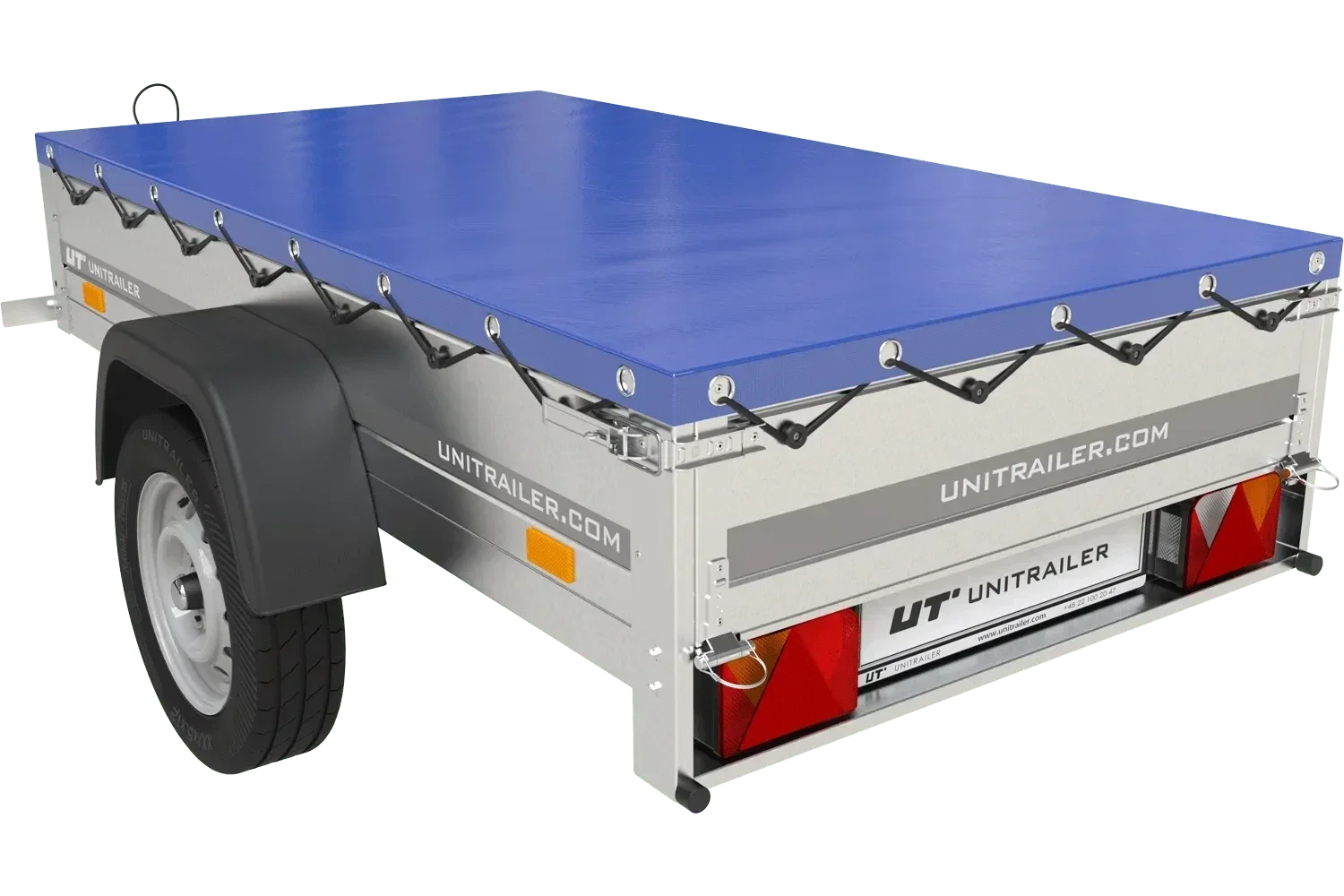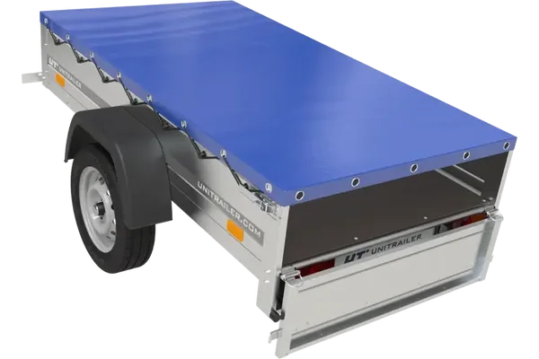 Vue générale Garden Trailer 200 Remorque voiture Kipp avec bâche plate bleue
